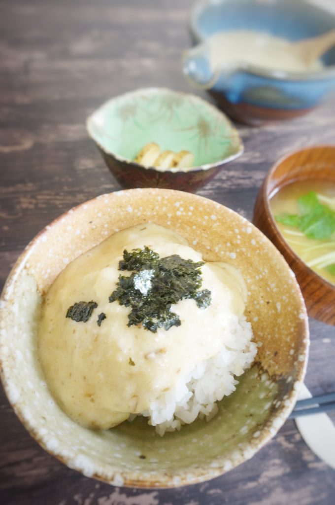- とろろに、冷えた味噌汁を加えながら混ぜ合わせ、お好みの固さにのばす。